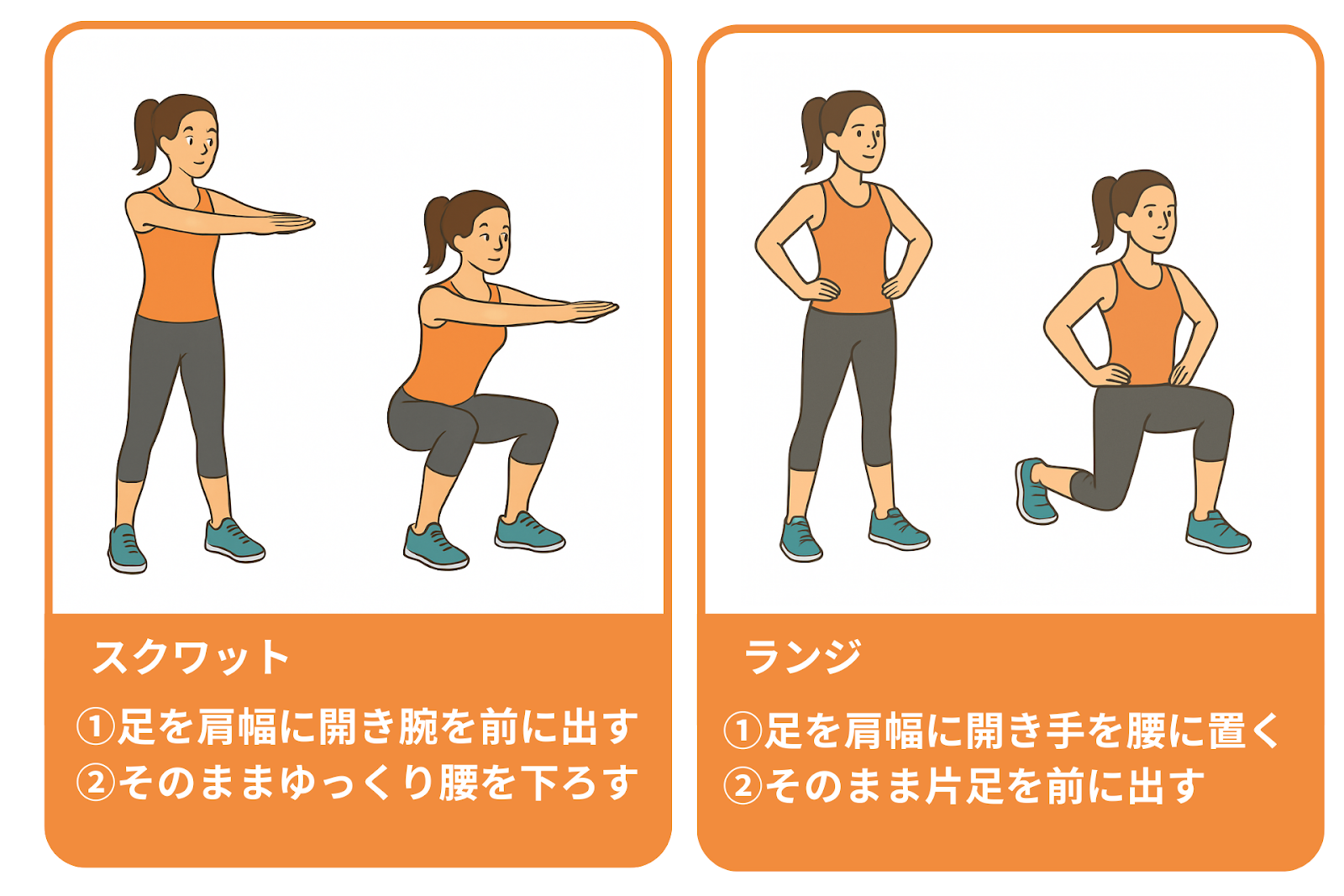 - スクワットやランジなど、太ももを鍛えるトレーニングを行う