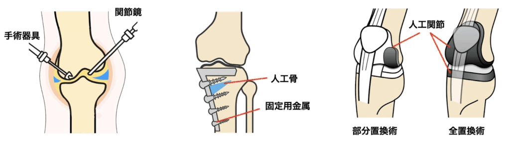 いずれも手術後のリハビリが不可欠であり、患者様の生活スタイルや年齢を考慮することも大切です。